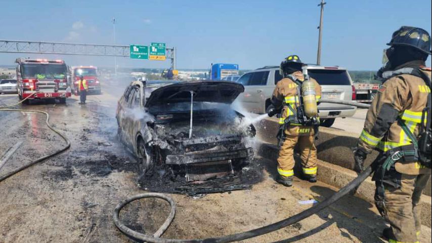 The West Baton Rouge Fire Department posted a picture of the car fire. Multiple lanes were blocked while officials cleared up the aftermath.