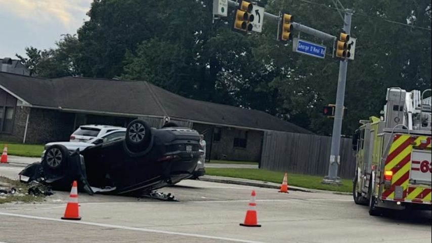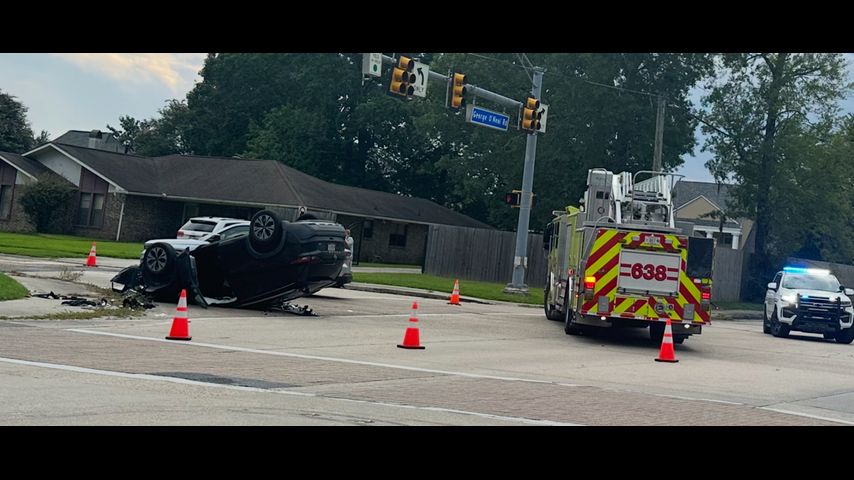 BATON ROUGE - A car overturned along O'Neal Lane in a three-vehicle crash on Tuesday.