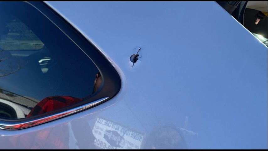 "I didn't see any tires, but the car next to me sped off, and it was a light-colored sedan, and then I knew I definitely got shot at," she said.