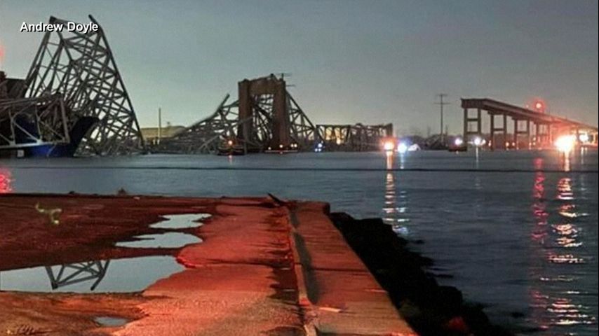 Cargo ship hits Baltimore's Key Bridge, bringing it down. Several people believed to be in water