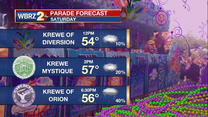 BATON ROUGE AREA PARADE SCHEDULE, WEATHER FORECAST: