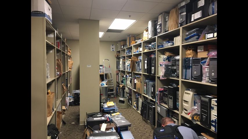 The proof is in the evidence room. Upstairs is a highly secured room where all the evidence is stored. Only three people at the Attorney General's office have access to it. Inside, hundreds upon hundreds of computers, cell phones, eye pads and tablets. All are labeled and tagged as evidence. The items in this room seized during raids where adults got caught committing crimes.
