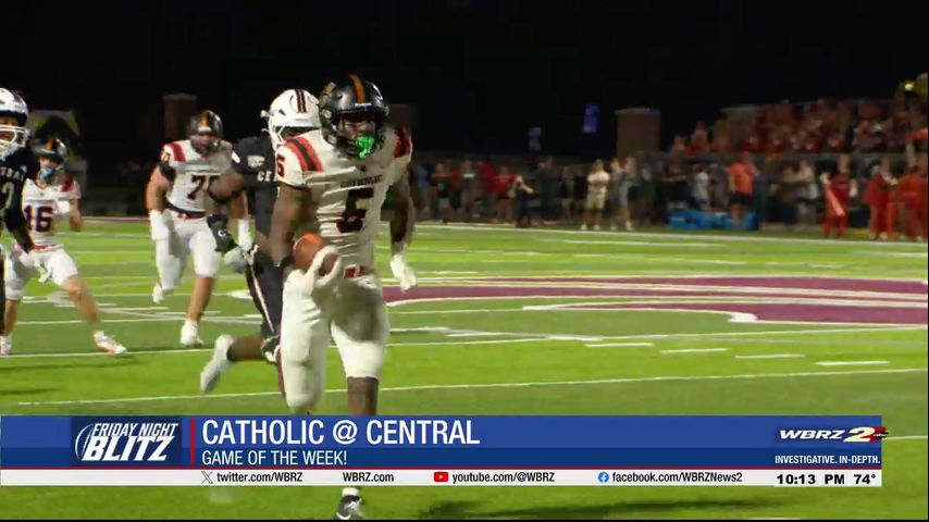 Catholic tight end Jude Chamberlain accounted for two receiving touchdowns and 116 yards on three catches and Bear running back Jayden Miles rushed for two scores and 75 yards while catching three passes for 74 yards and another touchdown to help put the Bears in front 19-0 before Central would get on the board.