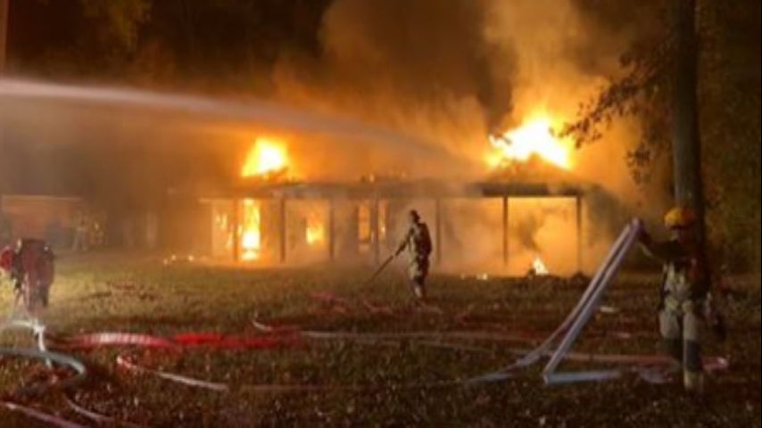 Multiple crews of firefighters converge to battle devastating overnight blaze on Strain Rd.