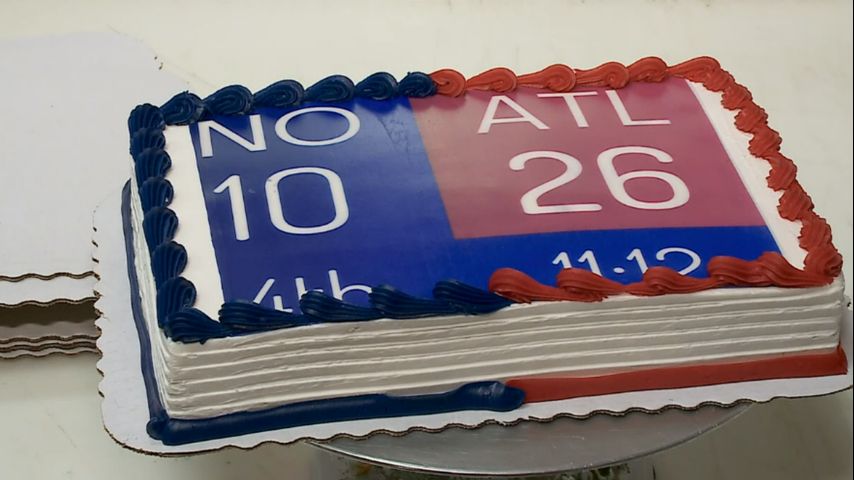 The cake symbolizes a historic addition to the bitter—yet friendly—rivalry between the Saints and Falcons.