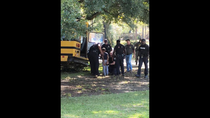 This little boy took a school bus on a joy ride this morning, causing a police chase with several BRPD units. Crashed into a tree and took out a gas line. He is okay. @sydneykern is on scene. https://t.co/n9WPLtyy4d