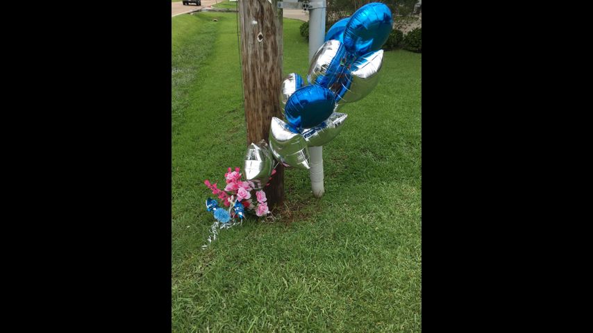 Samuel Lee, III, was hit and killed by a suspect involved in a police chase with Baton Rouge Police Wednesday evening. Lee was crossing the street when he was run over on Old Hammond near O'Neal in front of his house at the corner of Gloria Drive. The memorial was wrapped around a telephone pole near the spot where he was hit.