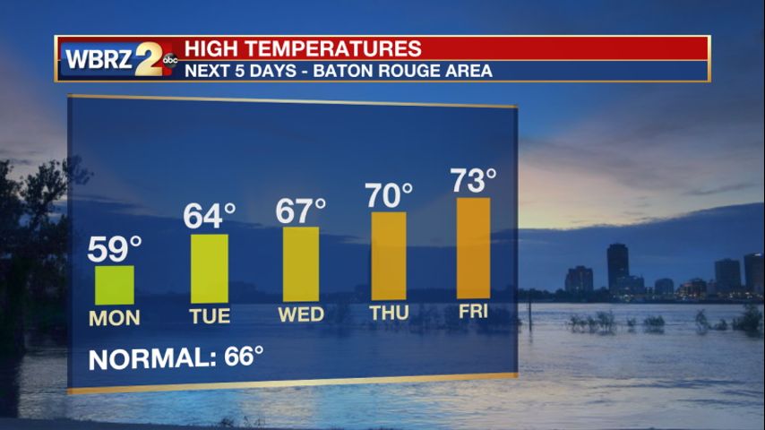 Up Next: A warmup is on the way. Dry skies will stick around through most of the week. Temperatures in the afternoon will warm up little by little every day until we hit the low 70s on Thursday afternoon. Friday is looking mostly dry until a front starts to spark up rain in the late evening hours. That rain will linger overnight into the morning hours of Saturday. A few showers will be possible on Sunday as well with temperatures in the low 60s. Click here to see the 7-day forecast.