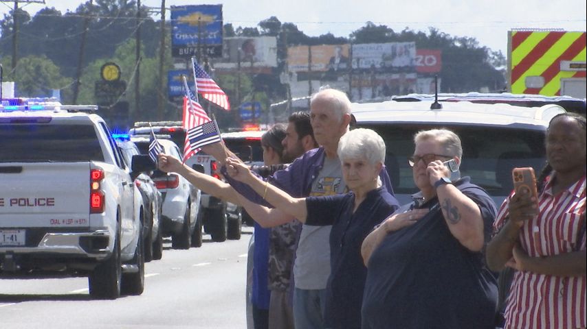 Citizens pay respect to fallen Iberville Deputy as body is escorted to Gonzales funeral home