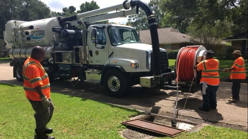 Wednesday afternoon, a crew and the Vactor 2100 Plus were on Buchart's street checking for blockage in drain pipes underground. The Vactor is a powerful self-feeding pressure washer. It snakes through drains and blows out debris.