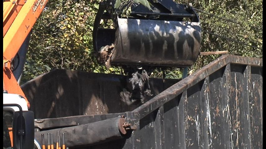 It's in front of Buchanan Elementary School. Today, a large truck used a heavy duty scoop to pick up piles of debris like old gas tanks, wood and other items that shouldn't be there.