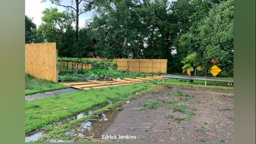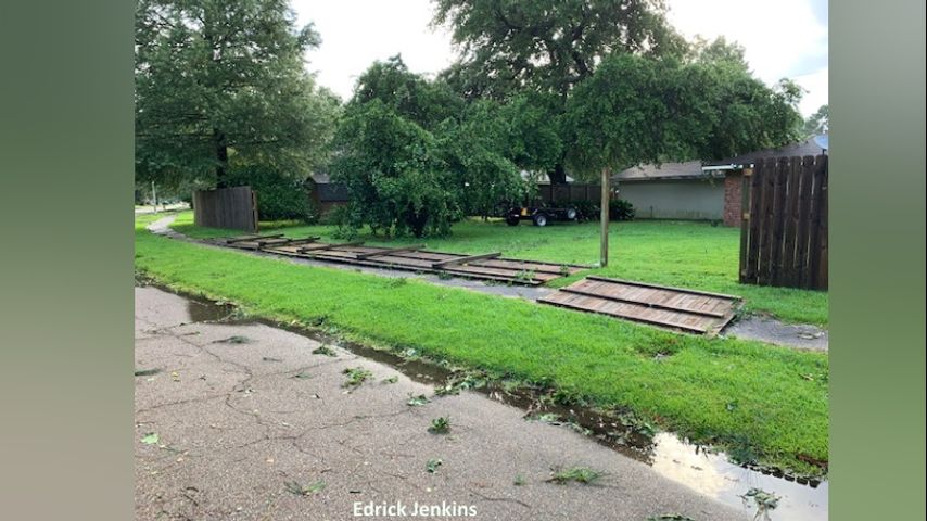 The Cedarcrest neighborhood off Old Hammond Highway was left with damage. Tree limbs line the streets of Seracedar and Bronze Bush and some homes have lost fences.