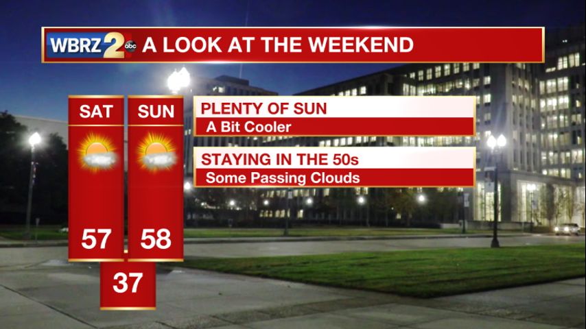 Up Next: Saturday and Sunday high temperatures will be in the upper 50s and lows in the upper 30s and low 40s. Next week will bring a slow warm-up with temperatures in the mid-60s and rain returns to the forecast on Wednesday. Click here to see the 7-day forecast.