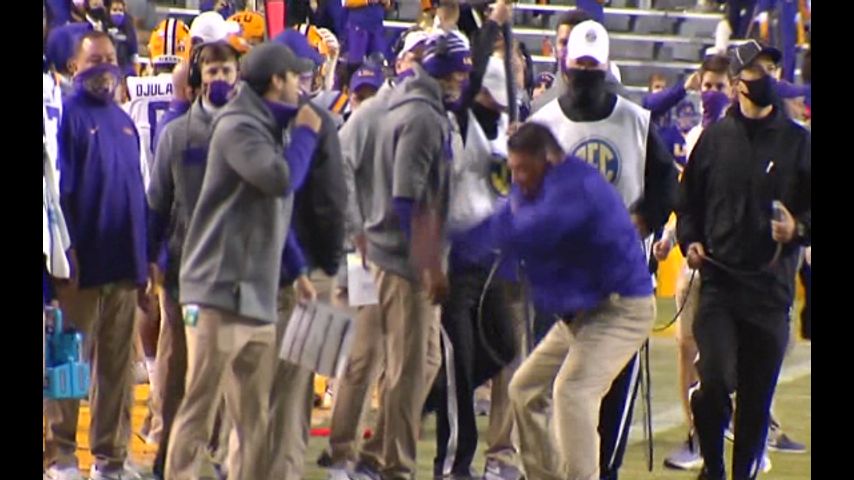 On the sidelines, that frustration was arguably most apparent with LSU Head Coach Ed Orgeron, who was seen spiking his headset at the ground after one of Alabama's many touchdowns in the first half.