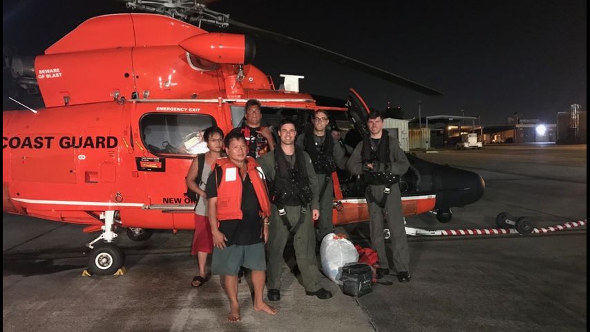 The helicopter arrived at the scene within the hour to find the two clinging to the hull of the sinking vessel. They were hoisted out of the water and taken to an air station in New Orleans.