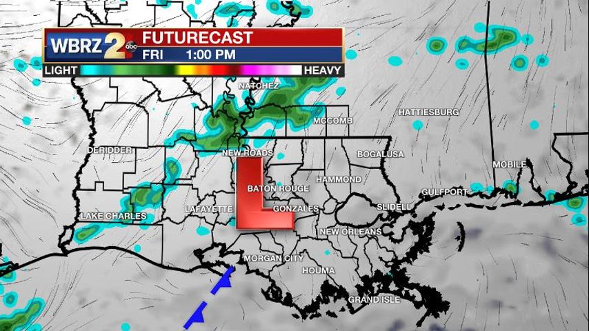 Up Next: The upper level low associated with the front may not fully cross the region until Sunday. So, on Saturday skies will be mostly cloudy to partly sunny but any precipitation should be isolated due to the lack of a significant trigger. On Sunday, the upper level low will serve as a trigger and therefore set off scattered showers and thunderstorms. At this time, it appears areas north of I-12 may need to pay attention to the possibility of severe weather. Both days will stay close to seasonable highs in the upper 70s and low 80s. By next week, a very familiar warm season pattern will take hold as temperatures and humidity climb with isolated to scattered afternoon showers and thunderstorms. CLICK HERE for your full 7-Day Forecast.