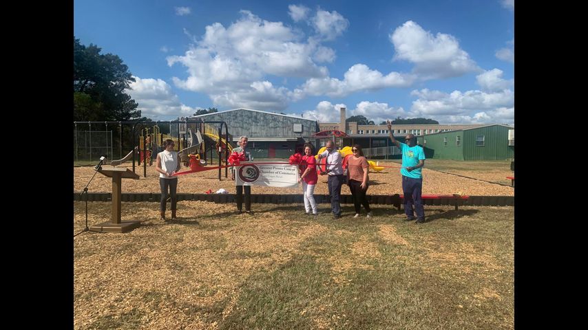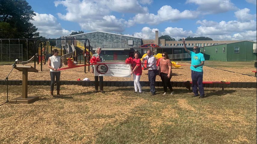 The Pointe Coupee Chamber of Commerce hosted the ribbon-cutting ceremony around noon at the Rougon Elementary playground.
