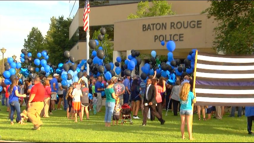 The event took place just outside of Baton Rouge Police Headquarters on Airline Highway. Those in attendance brought with them blue and black balloons to release in honor of the fallen officers.