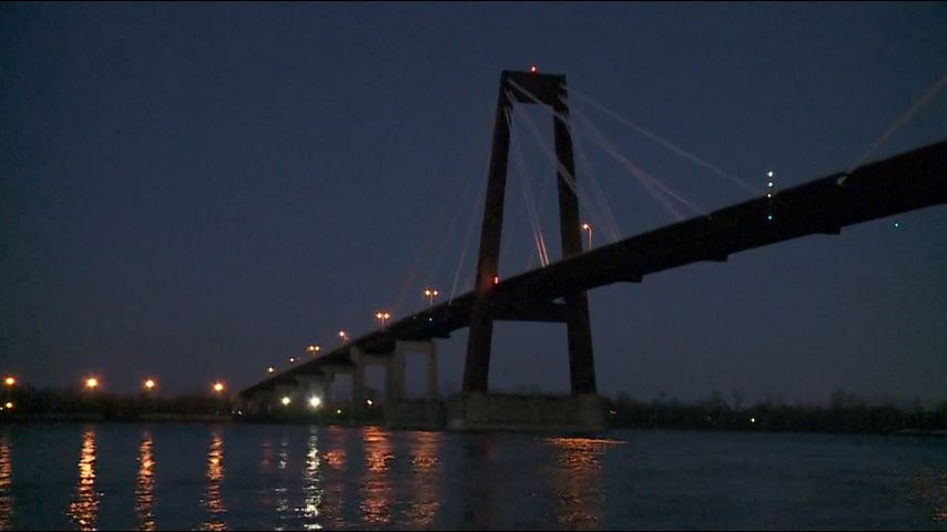 DESTREHAN, La. - State police are searching for a driver who crashed through a construction zone early Thursday morning, sending a worker plummeting from a bridge into the Mississippi River.