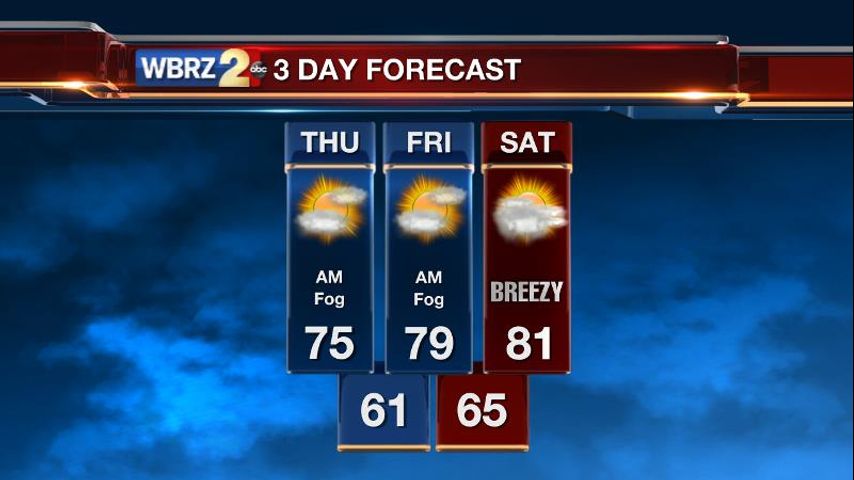 Today and Tonight: Thursday will repeat an ongoing pattern of morning fog, partial afternoon sun and warmer highs. Despite more clouds than sun, area thermometers bounce into the mid 70s. At night, while fog is again possible, increasing winds and some clouds may negate widespread development. Lows will be in the low 60s.