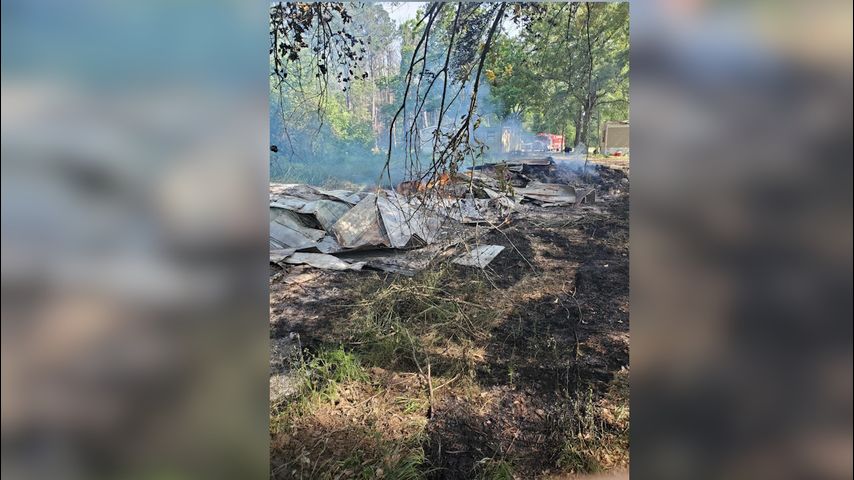 Images show the smoldering, demolished house surrounded by burned up brush.