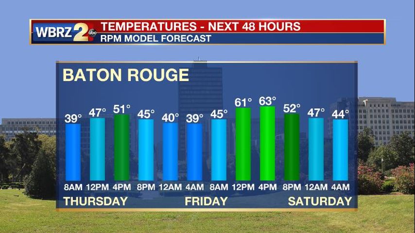 Up Next: As skies remain clear, temperatures will gradually increase through the weekend and into early next week. By Sunday, highs will break into the 70s and by Monday, lows will be in the 50s. Clouds will be increasing late in the weekend as southerly winds begin to move warmth and moisture onshore from the Gulf. This will occur ahead of a cold front poised to pass through our area in the late Tuesday to early Wednesday timeframe. It is too early for details on this system though it does have some characteristics of a strong spring storm system, so stay in touch through this pleasant stretch of weather.