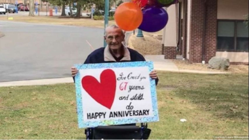 Couple separated by virus precautions finds creative way to celebrate 67th wedding anniversary