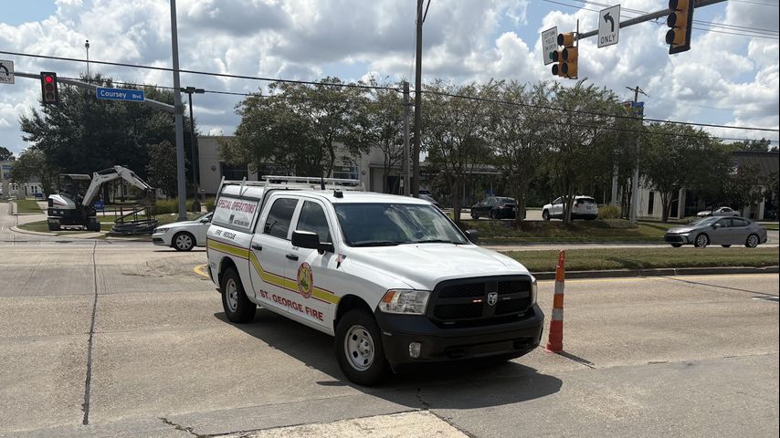 Coursey Boulevard was blocked at Coursey Cove beginning at 10:36 a.m., according to the St. George Fire Department. The department blamed a natural gas leak.