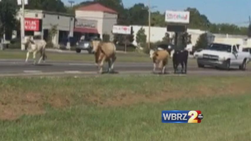 Video provided to WBRZ by a user showed the cows running southbound ahead of traffic on Airline Highway.