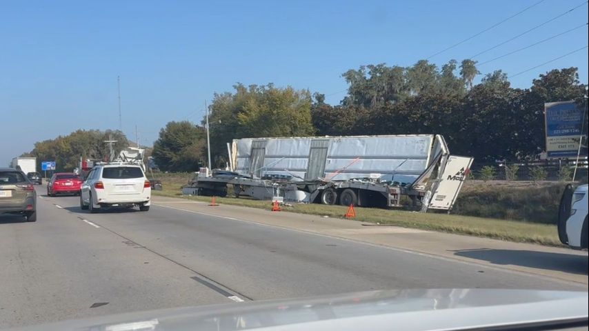 Video showed a semi-truck on the side of the road that separated from the cab. The back of the vehicle appeared to be destroyed.