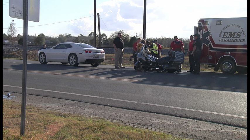 The crash happened just after 3 p.m. Thursday afternoon near the intersection of Nicholson Drive and Gourrier Ave. The driver of the motorcycle was transported from the scene in stable condition with a shoulder injury.