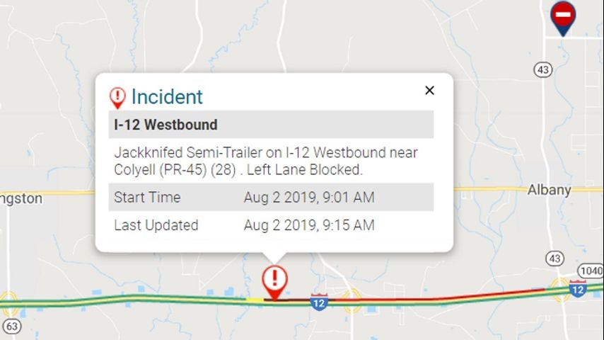 All lanes are open I-12 West at mile marker 29 (Holden). Congestion is 1 mile in length.