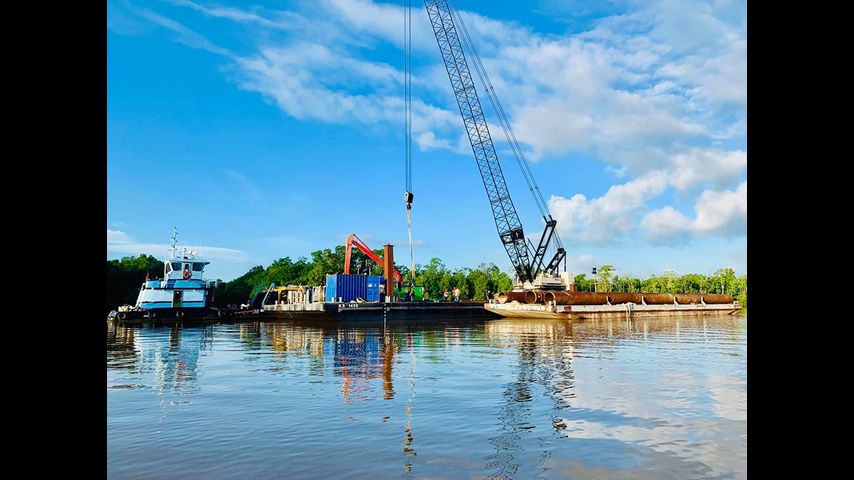Crews begin sinking barge flood gate in Bayou Chene Wednesday