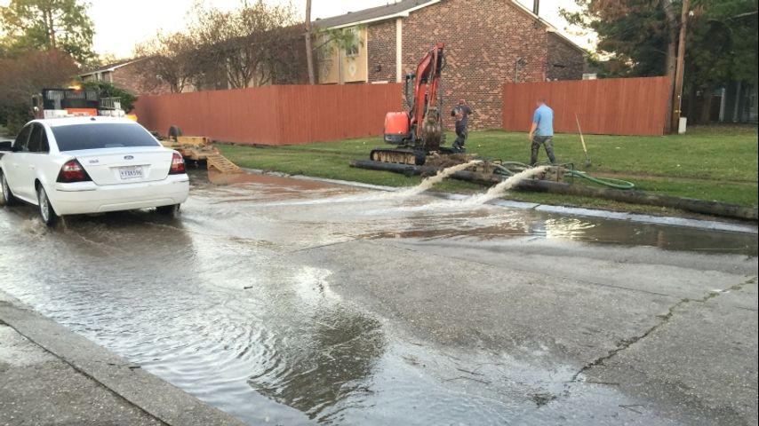 Crews are currently pumping water from a hole to fix the broken pipe.