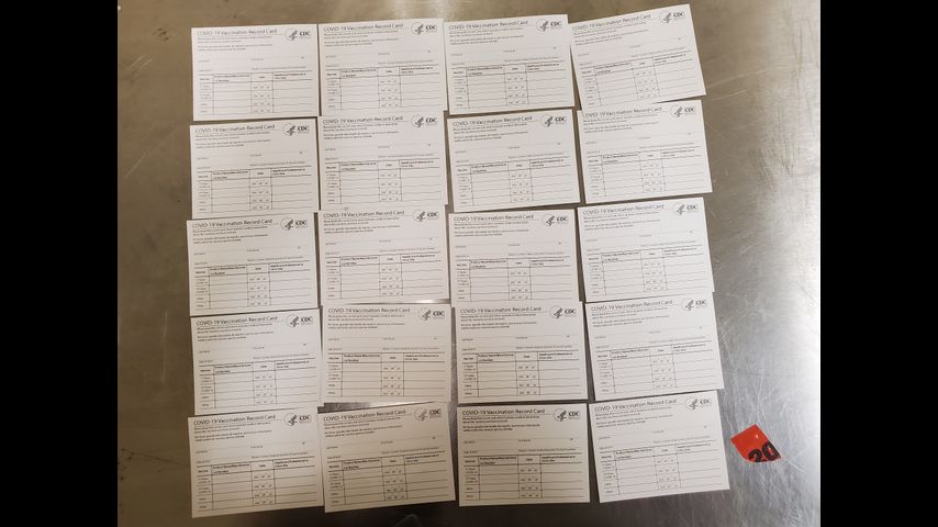 The Department of Homeland Security reported Friday that a shipment from China carrying 51 false vaccination cards was flagged at a port in Memphis, Tennessee. Officials described the phony cards as "low quality," with several typos and misspellings.
