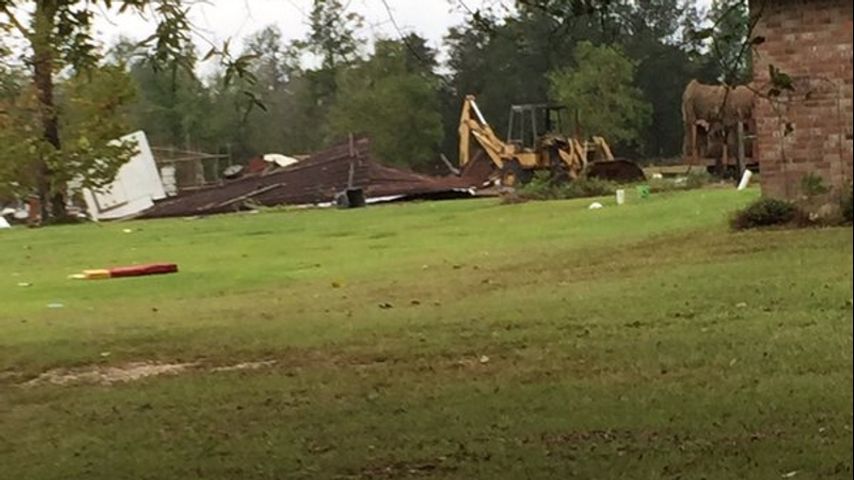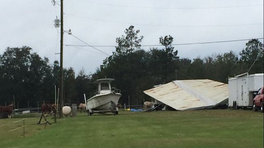 Christopher Bannan, a meteorologist with the National Weather Service in Slidell, says four homes have reportedly been damaged there after a tornado touched down. He says there was a report of a roof torn off one home.