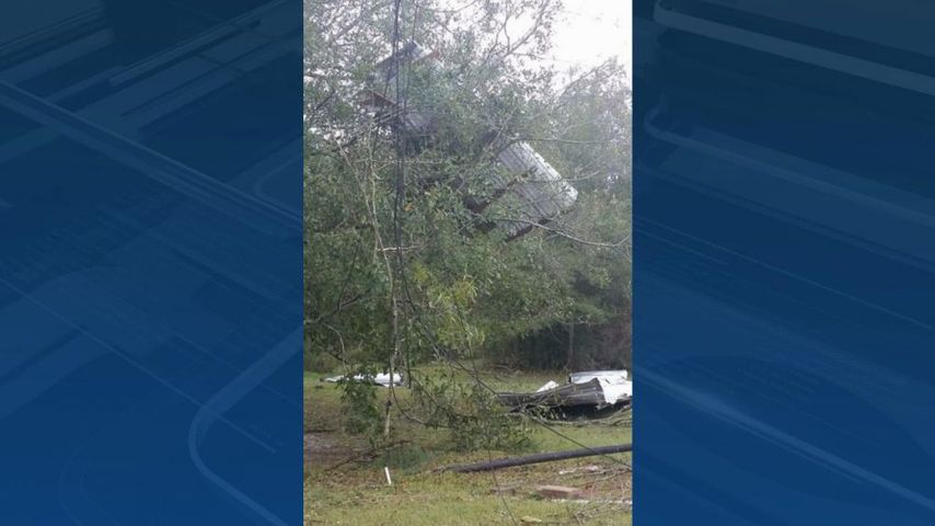 Photos sent to WBRZ via social media showed pieces of metal wrapped around trees as well as roof damage to one home.