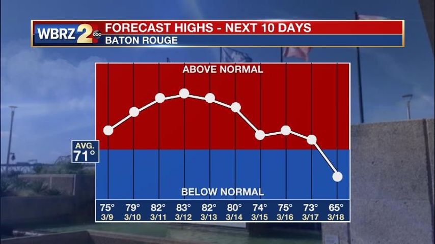 While it is too early to dig into the parameters and talk about specifics, the Storm Prediction Center has already outlined areas of northwestern Louisiana, Arkansas, Oklahoma and Texas with an outlook for severe weather. Should the system track a little farther south, it could be something to watch in the Baton Rouge area as well.