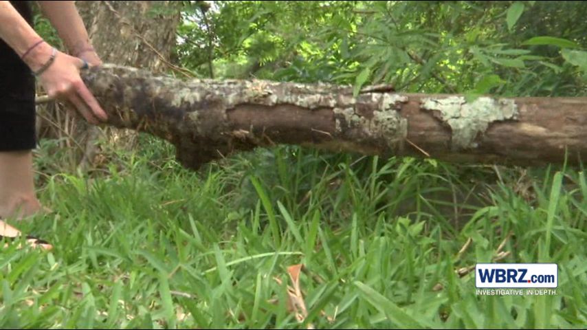 BATON ROUGE - A dead tree that towers over a woman's house is dropping limbs. Julia Walen says the tree doesn't belong to her and wants it gone before it does any serious damage.