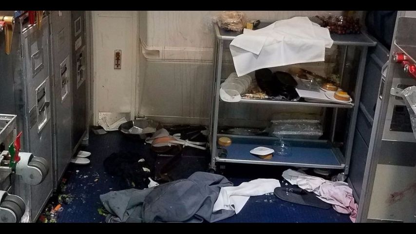 A passenger and a flight attendant were hospitalized with non-life-threatening injuries in connection with the incident.