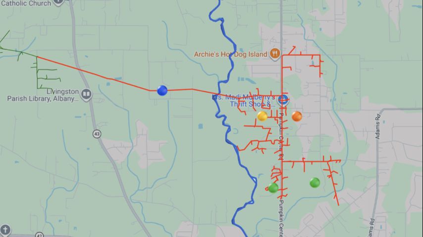 An outage map shows affected homes off of Pumpkin Center Road. DEMCO said about 234 people lost power around 5 a.m.