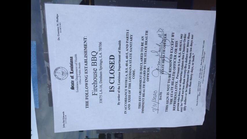 On Friday, Firehouse BBQ was given a notice by LDH to close down operations after the department received numerous complaints about the restaurant not following Gov. John Bel Edwards mask mandate.