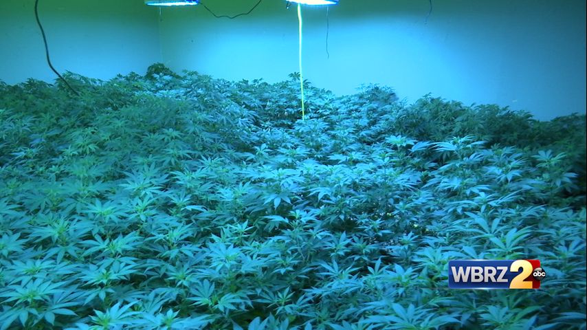 Video from the warehouse on Fellsway Drive, located off Monterrey Boulevard, showed a massive number of marijuana plants under rows of heat lamps. The sheriff's office said it seized nearly 1,000 plants between the different locations in East Baton Rouge.