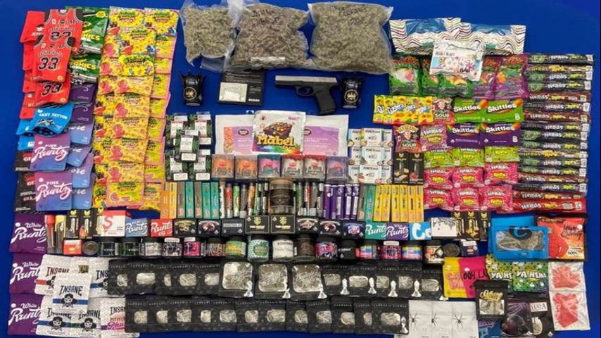 Deputies found a large amount of marijuana, cocaine, THC edibles, and cannabis oil extract cartridges. They also found a handgun, packaging materials, a digital scale and drug paraphernalia.