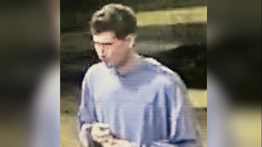Surveillance video shows the man to have brown hair and wearing a light blue, long-sleeve shirt or sweater.