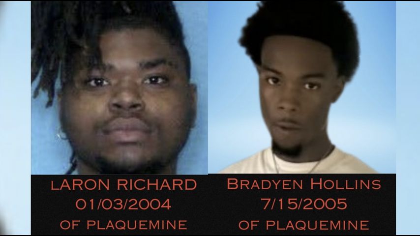 Brayden Hollins, 19, of Plaquemine and Laron Richard, 24, of Plaquemine are wanted on two counts of attempted second-degree murder.