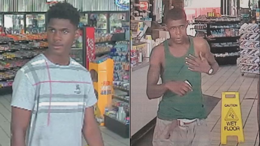 Officials say the two men, captured by surveillance video, stole a Chevrolet Aveo from the Speedy Junction on Highway 22 on July 31.