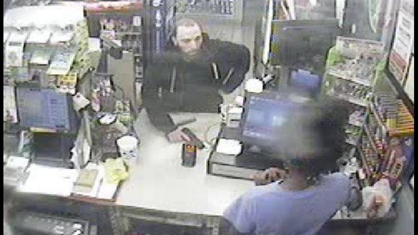 Surveillance video captured a snapshot of the man pointing the weapon at the employee.