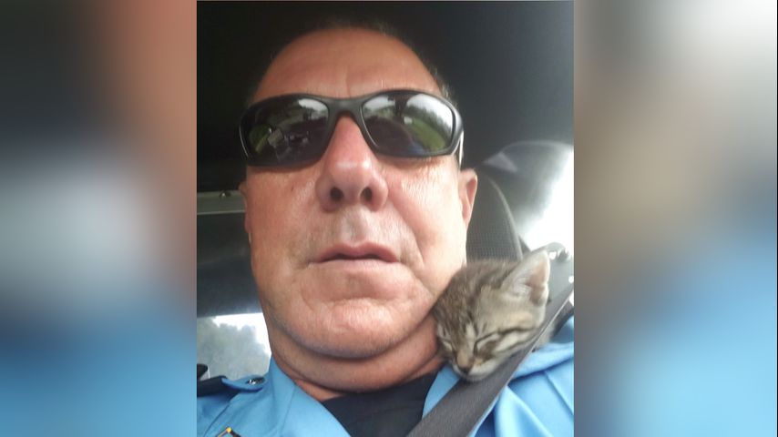 The Lafourche Parish Sheriff's Office says Deputy Harry Guillot discovered the animal while responding to a crash over the weekend. After helping the injured driver into an ambulance, Guillot found the kitten unharmed inside the car.