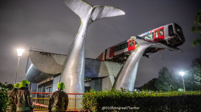 The incident unfolded in the Netherlands' city of Spijkenisse, around 12:30 a.m., Monday, according to local news outlets, and onlookers couldn't help but pause to stare at the odd sight of a subway train stuck, midair, on top of a giant art sculpture.